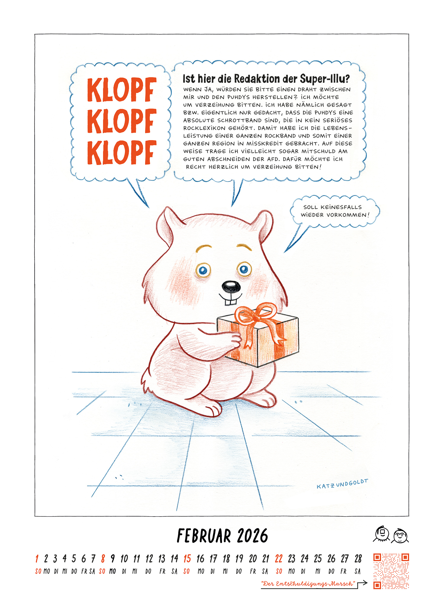 Aus dem vergriffenen Wandkalender 2026. Leute, die über den Katz & Goldt-Wandkalender 2027 informiert werden möchten, abonnieren unseren Newsletter!